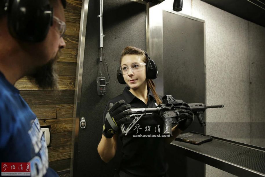 资料图:美女手持AR-15步枪打靶,这把配有战术握把和全息瞄具。